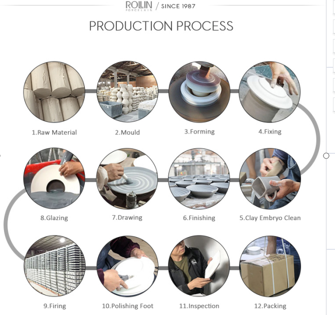 본차이나 식기의 생산 공정에 대해 더 알고 싶다면 ROLLIN PORCELAIN FACTORY에 문의하십시오.