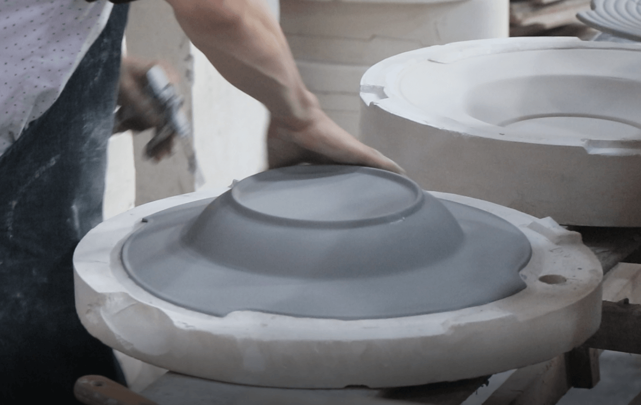 2.Rolling(그라우팅) 성형: 배아를 만드는 과정입니다.원형 평판 쿠페 플레이트 및 보울과 같은 원형 일반 제품은 전조 성형으로 만들어집니다.이질적이거나 불규칙한 제품은 찻주전자, 머그, 컵 등과 같은 사출 성형에 의해 만들어집니다. Rolling 성형은 기계적인 반면 그라우팅 성형은 수동 조작 또는 그라우팅 기계에 의해 형성됩니다.