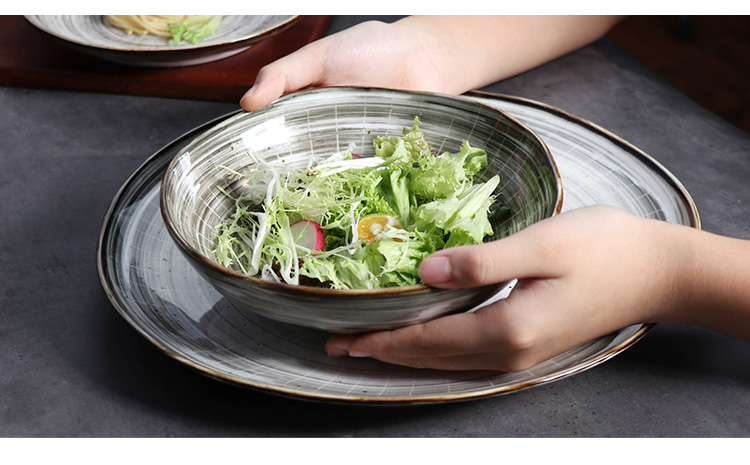 420ml 수프 식기 접시 소박한 석기 파스타 접시 식기류 레스토랑 용 파스타 접시