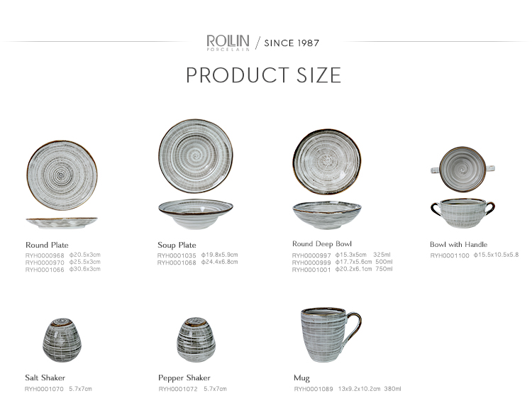 유약을 바른 석기 주방 도자기 접시와 그릇 접시 아래 레스토랑 식기 라운드 디너 플레이트
