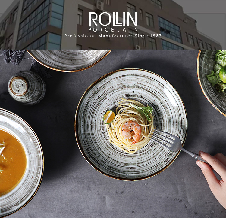 사기그릇 서빙 접시 Rollin 도자기 원형 접시 스테이크 접시 레스토랑