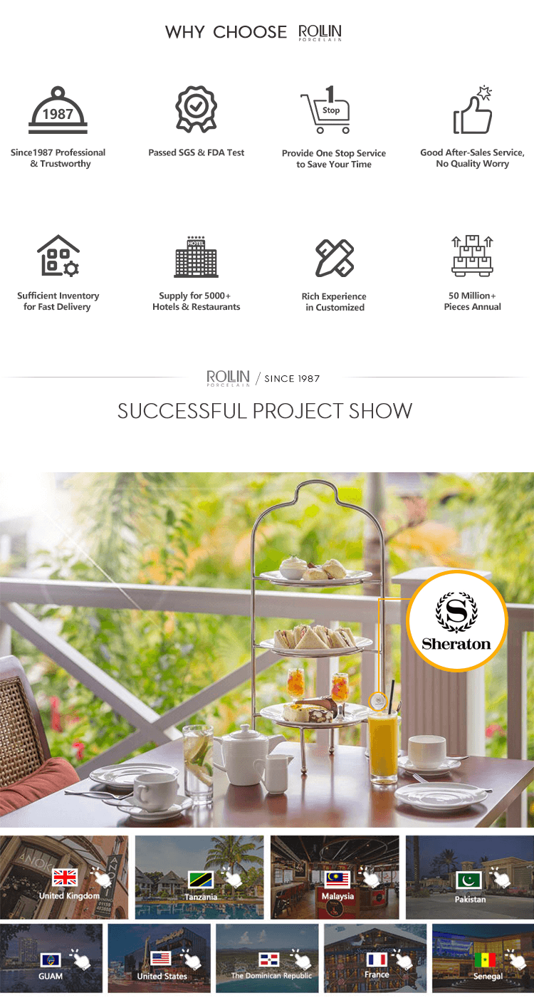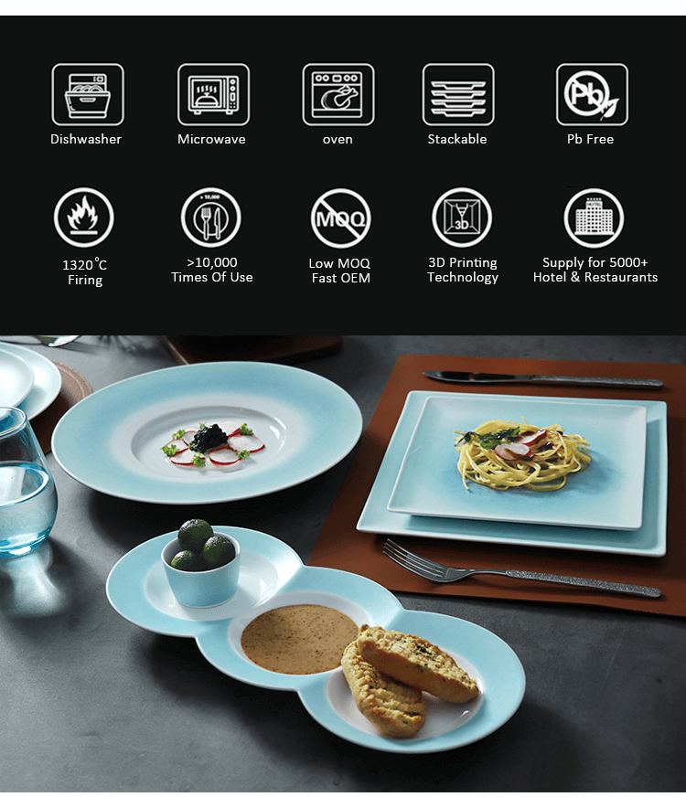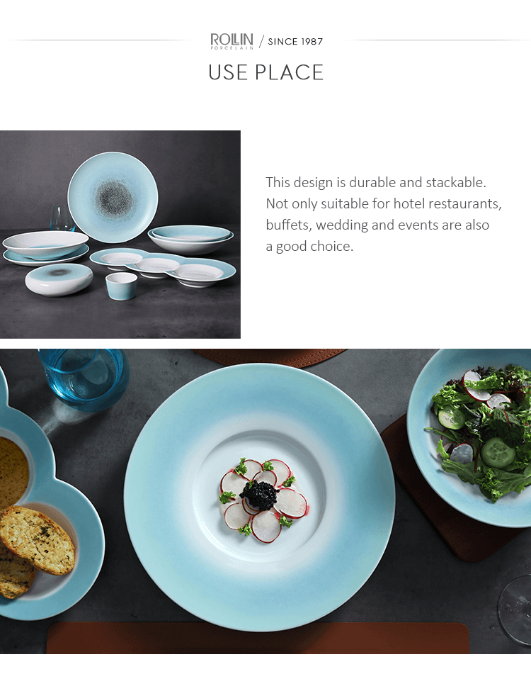 내구성이 뛰어나고 쌓을 수 있는 식기 세트입니다.호텔 레스토랑, 뷔페, 결혼식 및 이벤트에 적합할 뿐만 아니라 주방 및 가정 도매를 위한 좋은 선택입니다.