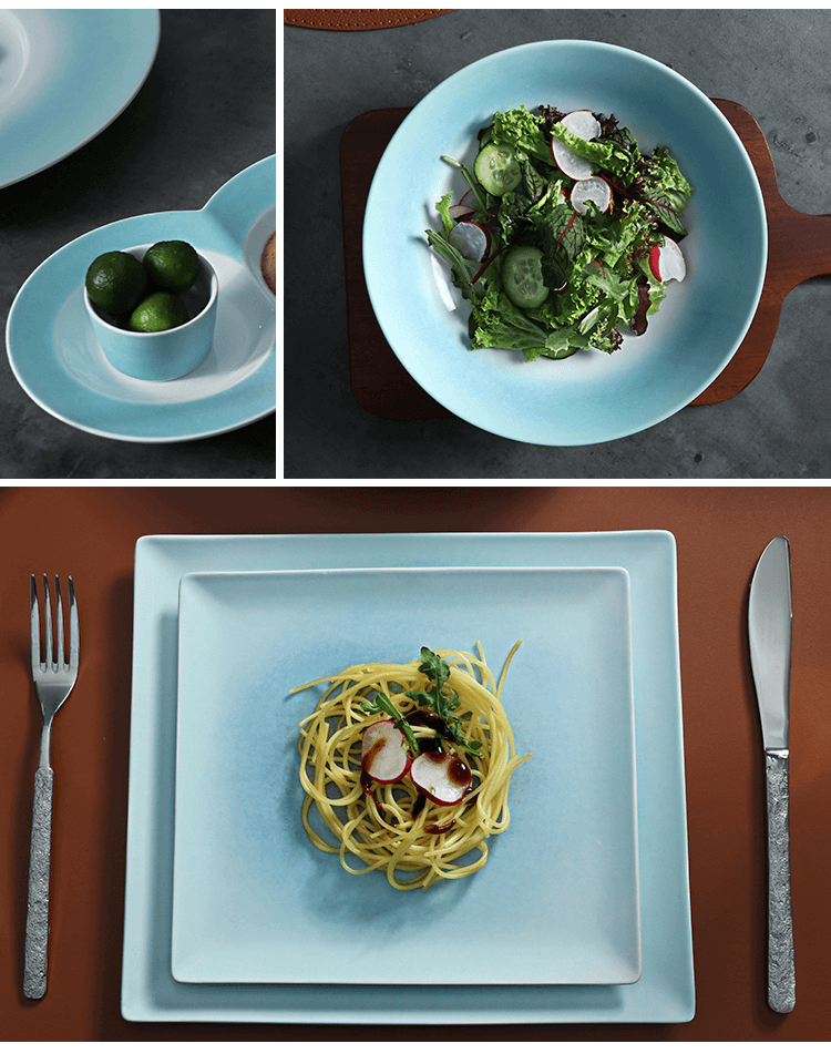 Chaozhou 세라믹 플레이트 세트 이탈리아 식기 식기 프랑스 매트 식기 디너 세트 캔들 플레이트 호텔 용품 포함.