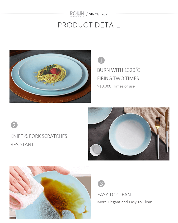 사기그릇 서빙 접시 Rollin 도자기 원형 접시 스테이크 접시 레스토랑